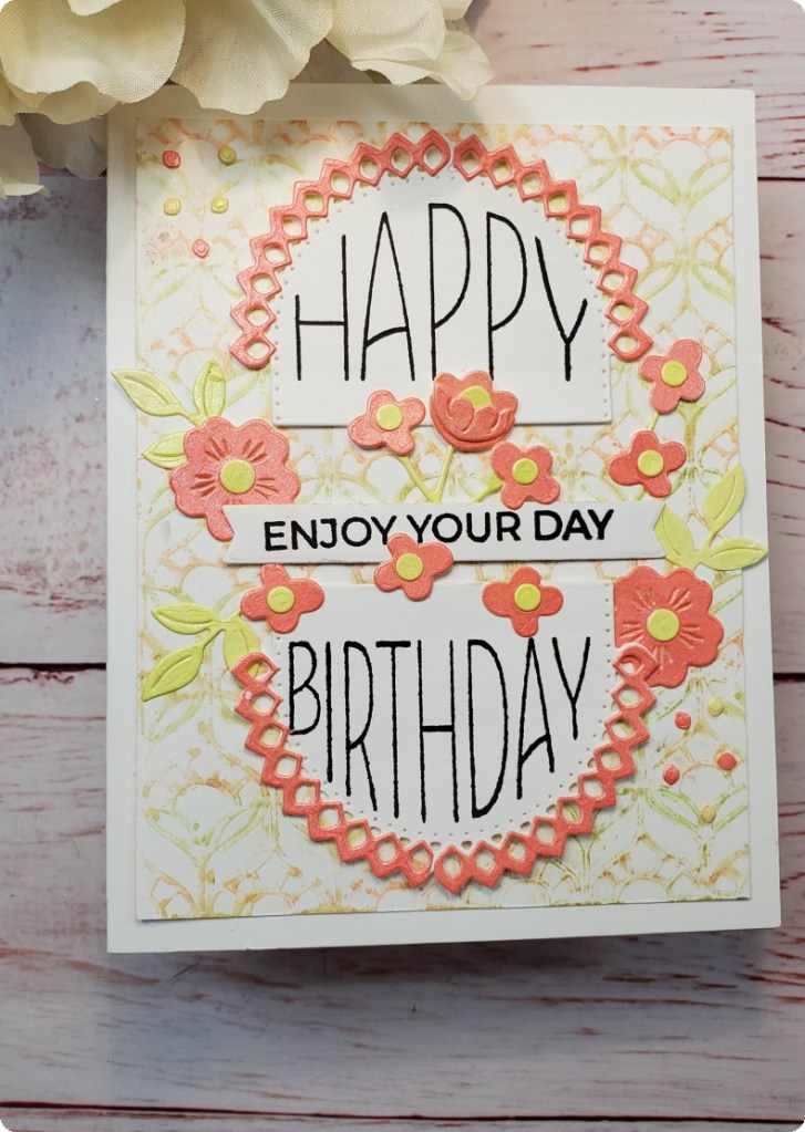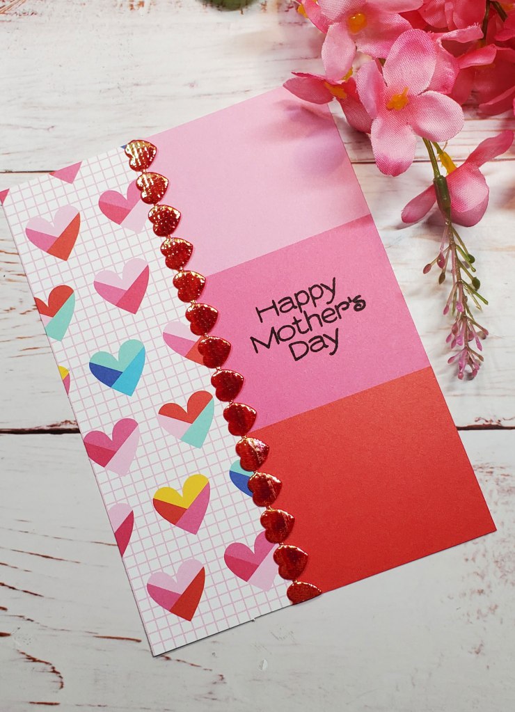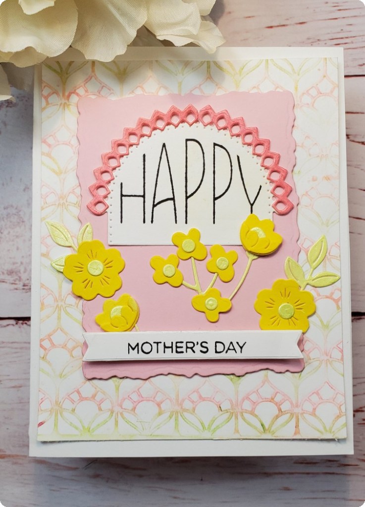Finally, I stamped the words on the die cuts. The words “MOTHER’S DAY” comes from another stamp set outside of the Kaleidoscope Arch collection. It’s called the Build a Sentiment STP-036. It’s not available on Spellbinder’s website anymore, but you may be able to get it elsewhere.