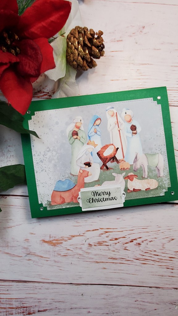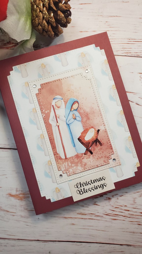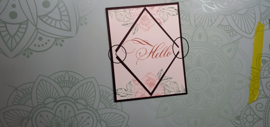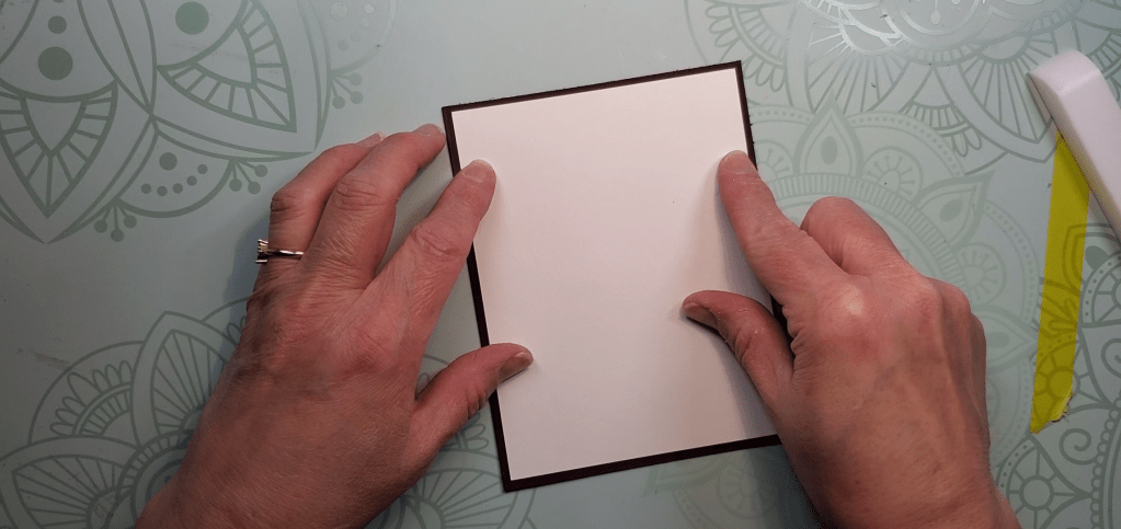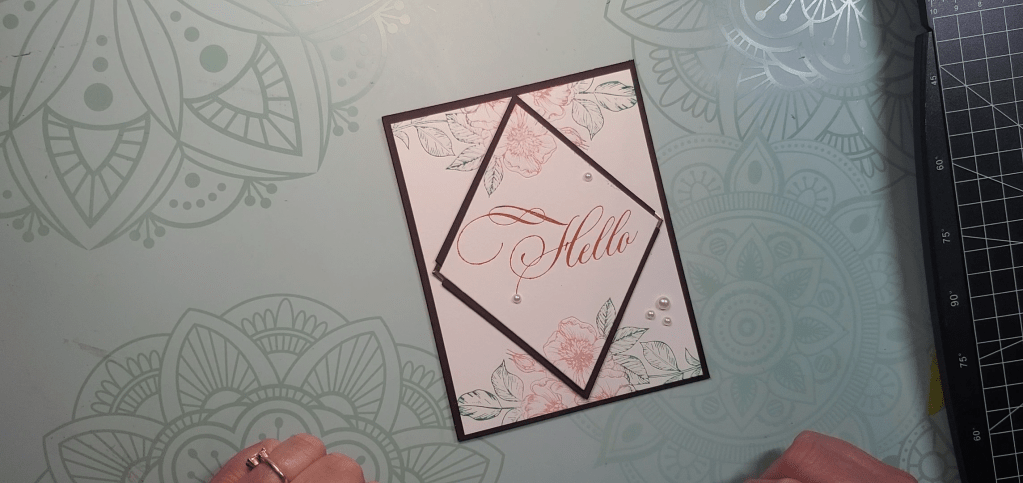 When you are finished you end up with a beautiful background for your card, which I trimmed down to fit on my A2 sized card base(4.25: x 5.5″).