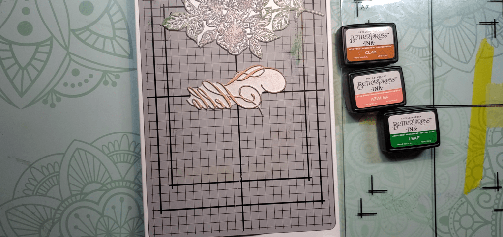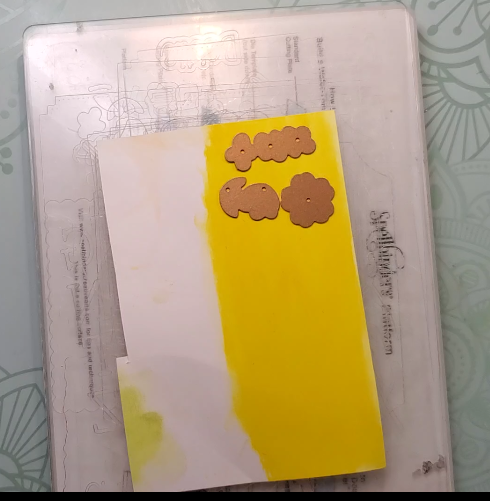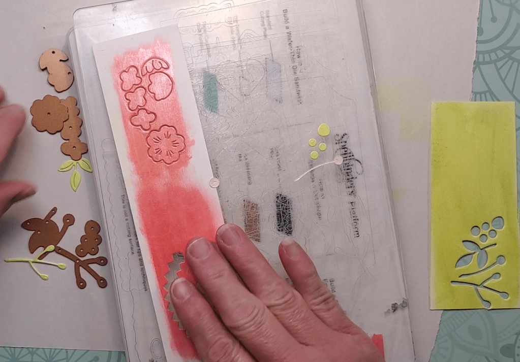 In order to get flowers that matched the colors in the background, I rubbed the same gelato colors on pieces of white cardstock and cut them out with the dies.