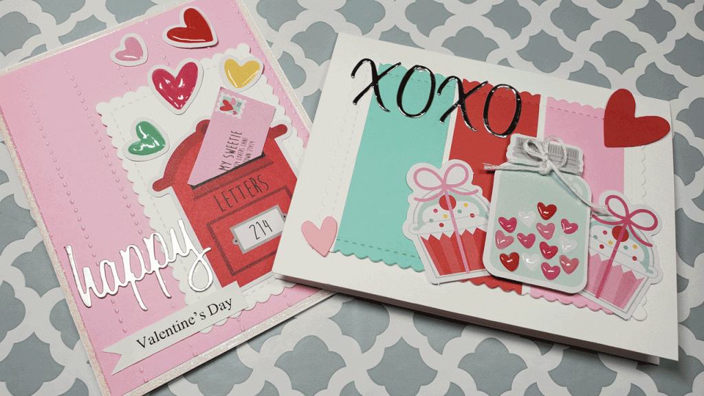 Then, I adhered two hearts, one red and one pink to opposite corners of the front panel. Finally, I die cut the letters XOXO from some silver mirrored cardstock and adhered them to the top, left of my front panel. Viola, I’m done! Unless, of course, you’d like to decorate the inside. You know I decorated the inside, right? You can see the inside of the cards in the YouTube video below. The affiliate links for the products I used are below the video.
