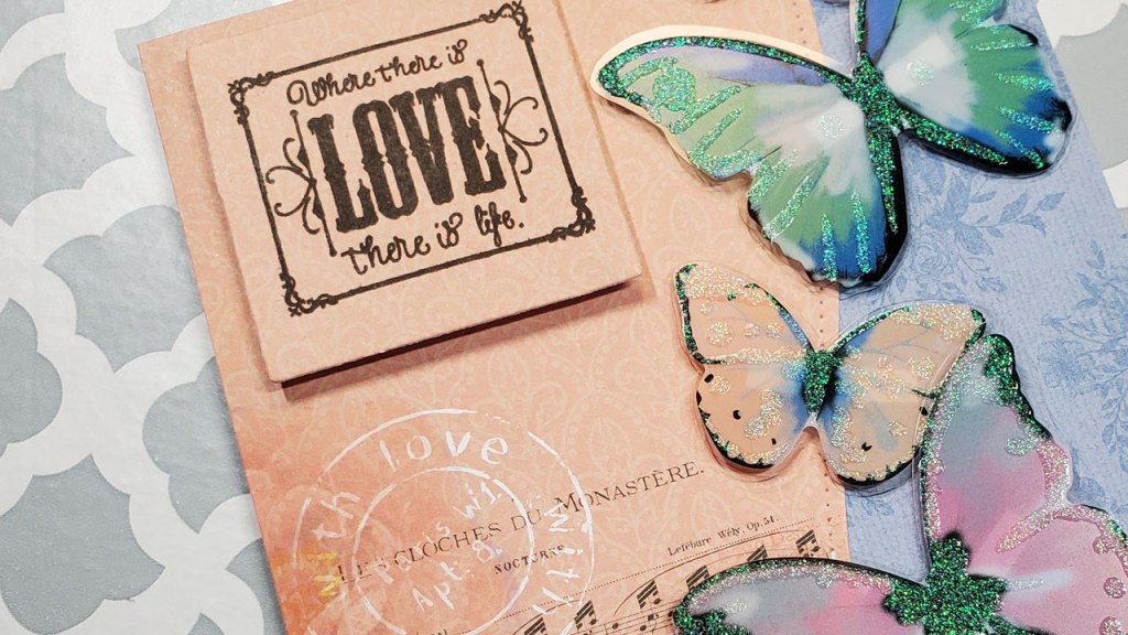 I’m making a beautiful card with some gorgeous butterfly stickers and pattern paper from the Spellbinder’s Card Kit of the Month for December 2021 called, “Beauty is Everywhere.” Now, I know it’s January, but I just got the kit due to shipping delays. I’ll be making several cards from this kit, so stay tuned.