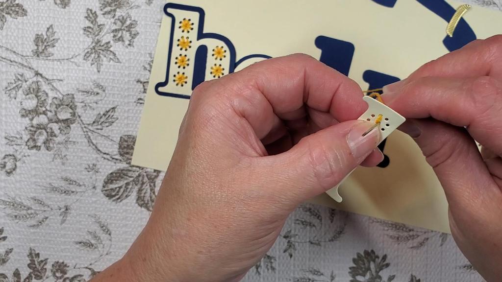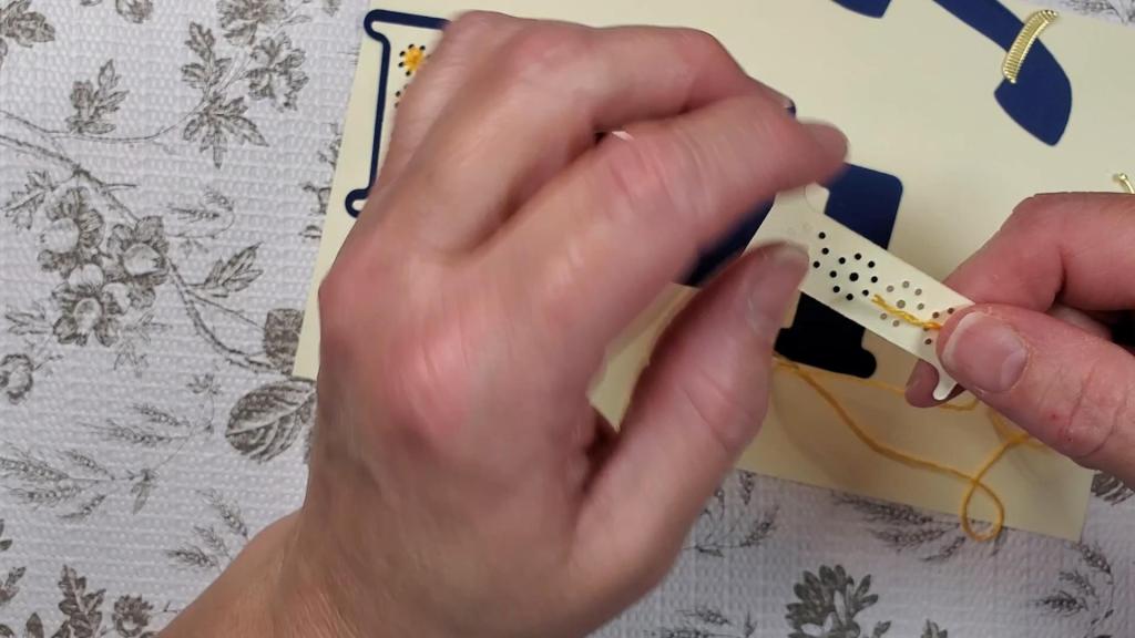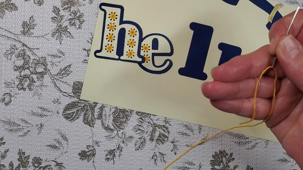 Cut a length of 20″ of embossing floss and thread your embossing needle.