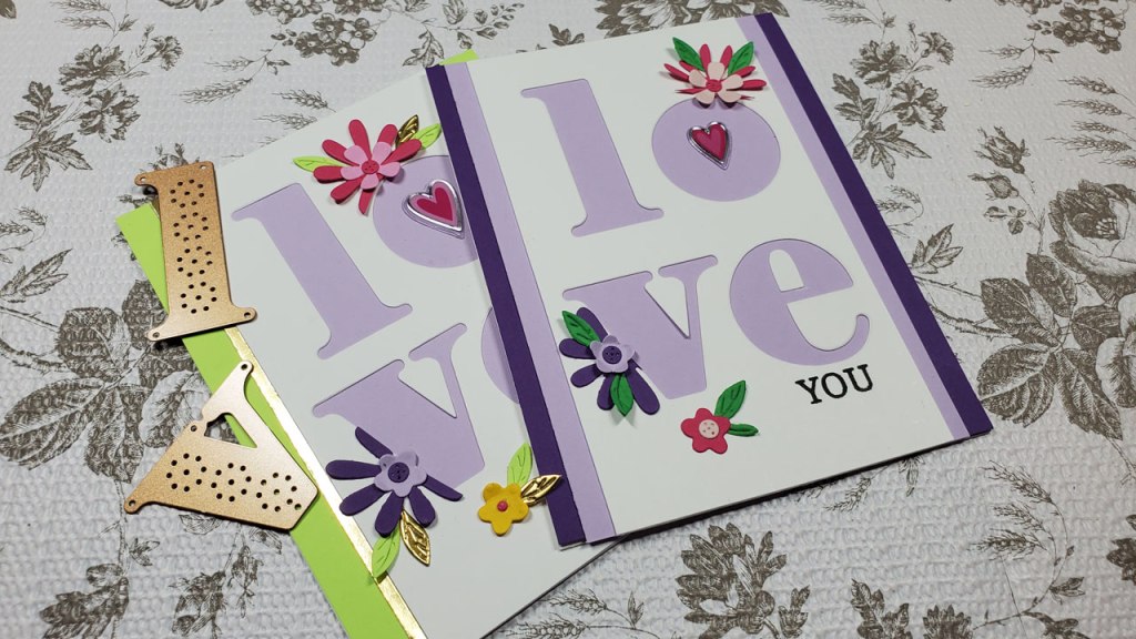 Today’s cards are similar to the last card in that the same dies were used to create the card. I always love it when you can get a two for one! In order to accomplish this, I am going to use the negative space created when cutting with the dies instead of the actual die cut letter.