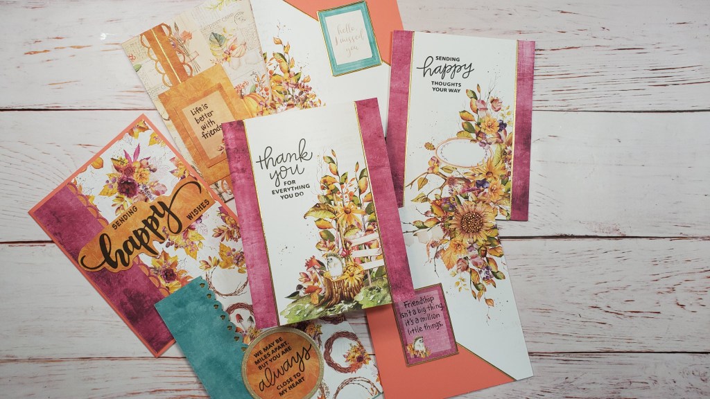 I love the colors of Autumn. Today’s cards feature some beautiful patterned papers with gorgeous fall colors from P13. They make it in a 12″ x 12″ format as well as the 6″ x 6″ format.
