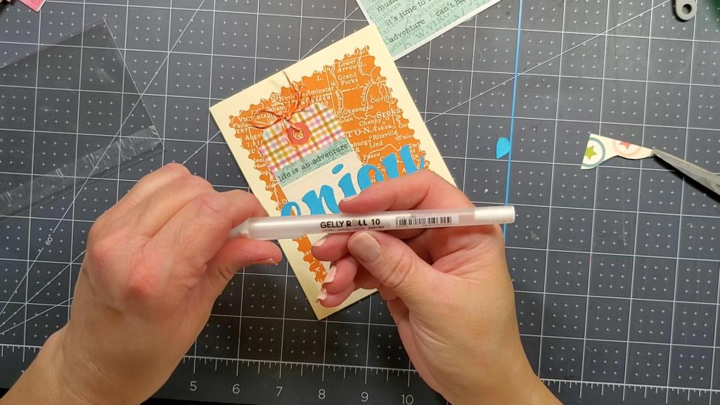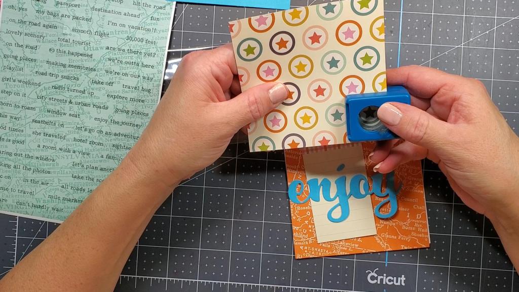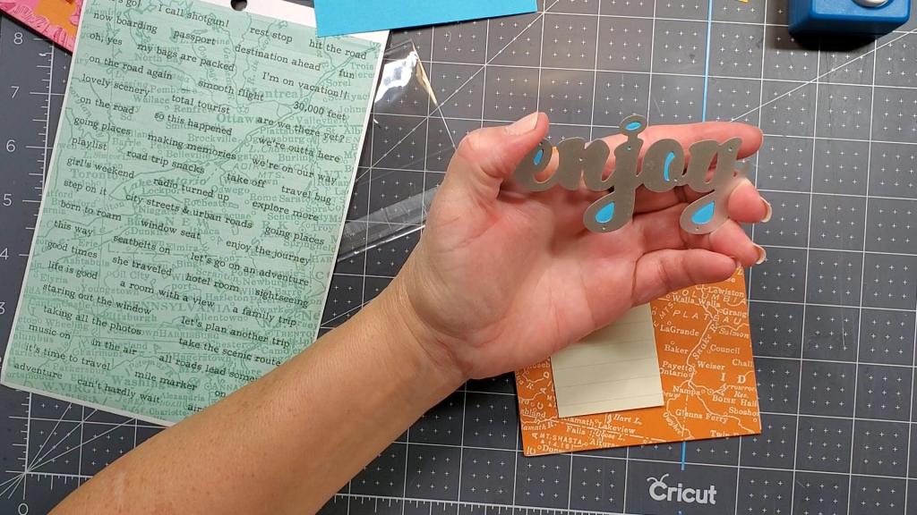 It’s always a lot of fun to make greeting cards by hand, but it’s even more fun to make a card that isn’t typical. Today’s card has a theme that is not typical for most greeting cards. It says, “Life’s and adventure. Enjoy the Journey.” It could be used to congratulate someone who is starting out on a new path in life or to bring encouragement to someone who’s had a set back or disappointment. I used the “Let;s Go” collection from Simple Stories which came in the September 2022 SCT Sampler kit I subscribe to once a month. The theme is travel and adventure, so it would be perfect for scrapbooking a trip or vacation. As you can see in the photo below, the background paper is a map.