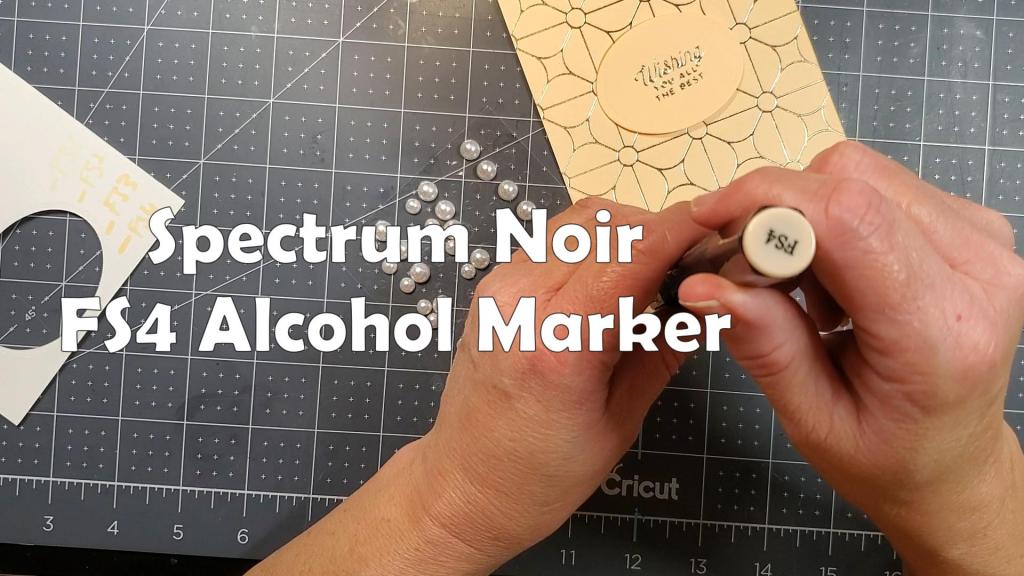 The cards feature elegant pearls, which I colored using my Spectrum Noir alcohol markers which I’ve had for years. In fact they make different ones now. The pearls on the peach card were colored with the FS4 marker. The pearls on the peachy pink card were colored with the FS6 marker, and the gems on the pink and grey card were colored with the PP2 marker. You can get the pearls already colored at Spellbinders.