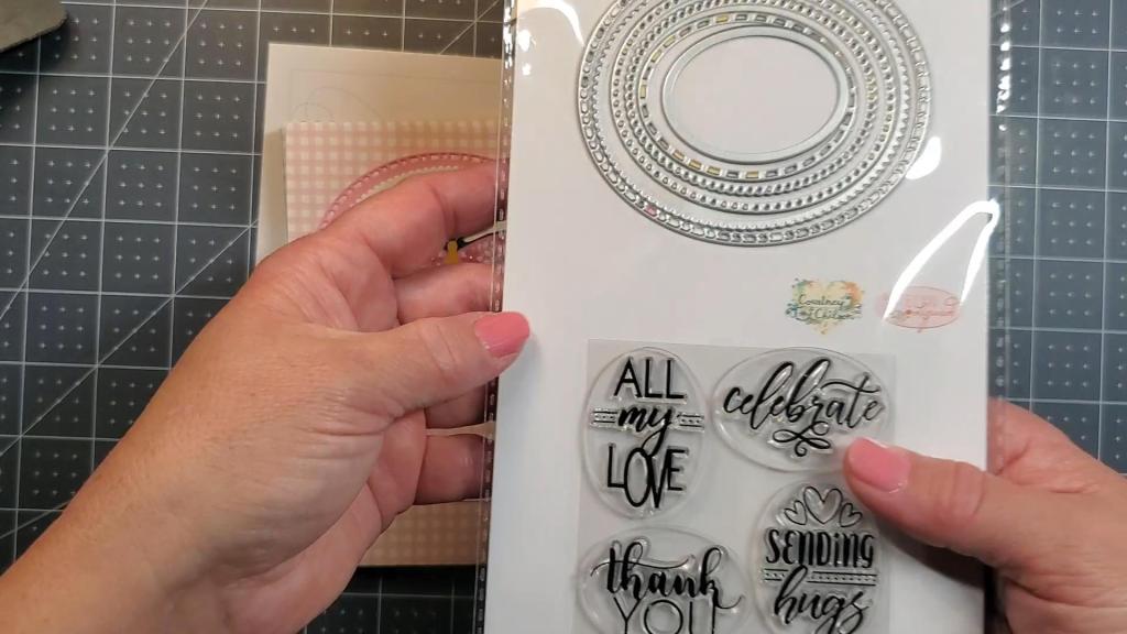 The oval with the sentiment was cut with the Nestabilities Small Classic Ovals Dies. I created a frame for the oval by stacking two dies together.