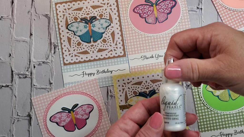 In addition, I used some Liquid Pearls to the centers of the flowers which appear on the butterflies wings.