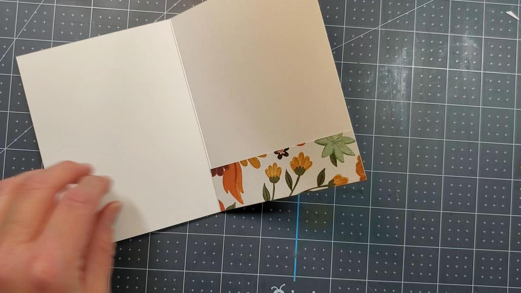 Once the front of the card was complete, I added the leftover strip of patterned paper to the inside.